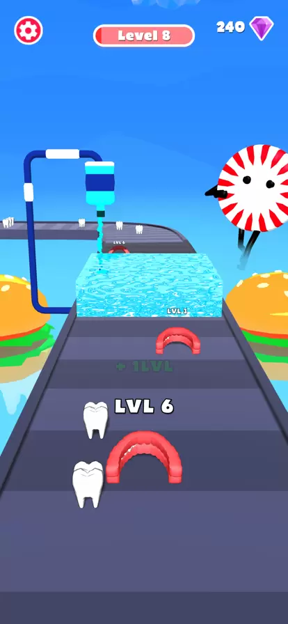 Level Up Gum,牙齿酷跑玩法,随你体验和众不要同的赛道上进行酷跑活动,不要同的道路上有不要同的障碍物与惊险等你避开,快速的挪移可以够加速前进,你会应对多种多样的挑战,玩法比较的自由,带来更多的欢乐,轻松有意思的跳跃行动,玩得不要亦乐乎。解锁不要同形状的牙套,每个都无比的独特,让人玩得开心不要已。