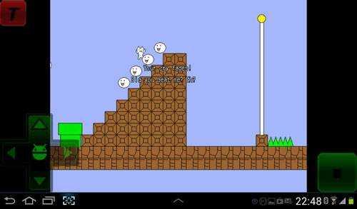 另一只猫毒死,躲过上面掉下来的砖头往右走,主角见到的不是公主,而是一只鸡,有危险。接下来是第二条。顶出扔东西的家伙后站到问号上(别被他扔了)等他快到左边一个弹簧的地方时跳到它上面,它会被弹飞并把主角丢到上面的平台上。往右走,第四关过。