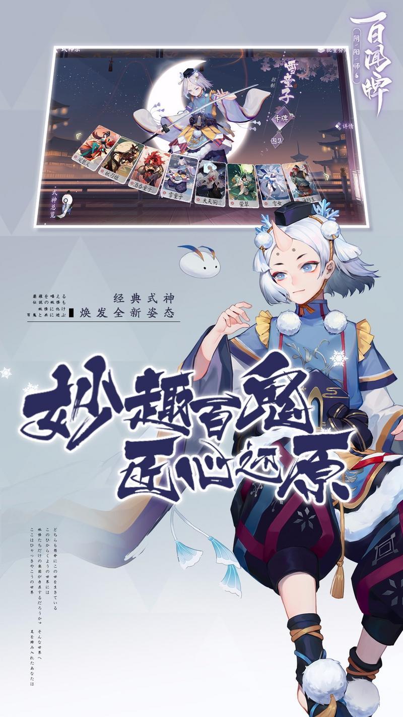 2019年网易全新研发的卡牌策略对战手游,延用了上款热门卡牌游戏的世界背景精致的游戏画面,精美的日系画风,日本知名声优倾情配音,带给玩家极致的游戏盛宴超多妖怪式神等待玩家的前去抓捕养成,更是沿用了阴阳师的全息卡牌设计,活灵活现的妖精登场。