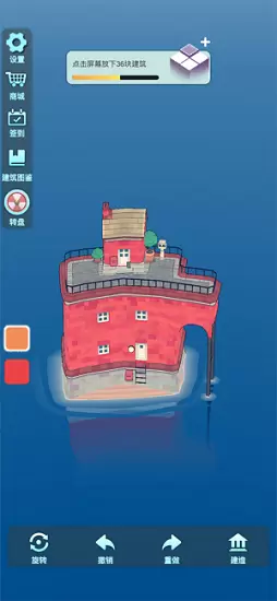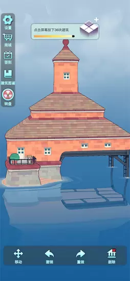 1、手游的主需要方法是在水面上制造一个漂亮的小镇,根据自己的设计蓝图进行规划,并不要断建筑与装饰;