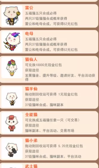 种类丰富的猫咪亟待解锁收集,喂养食物提升亲热度,带来更多收益加成!