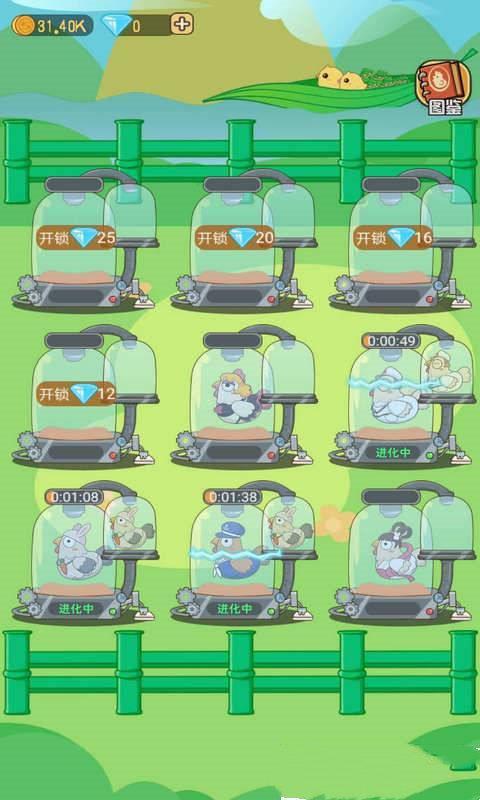 生殖哺育不要同品种小鸡,收集全图鉴的小鸡,赚取更多金币。