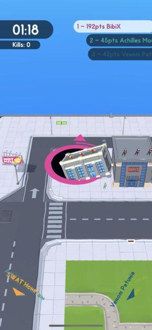 4、通过吞食场景中的建筑和道具来扩展自己,并根据大小选择想要吞食的物品。