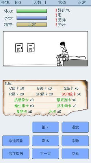 每天提供的食物和水也要抽卡,只有拔掉SSR才能继续活着通过关口。