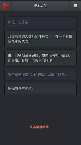 无心人生是一款以文字解谜为主题的剧情手游,无心人生手游之中玩家将会作为一位自杀者的父亲,你的女儿在某一天选择结束了自己的一生,你在收拾女儿的遗物时发现了很多奇怪的事情,女儿自杀的背后隐藏着什么秘密呢?