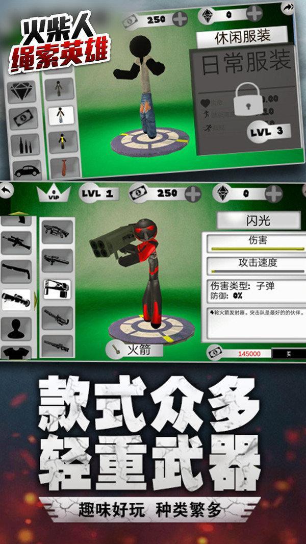 D.多样武器:多种可选武器,如绳索、手枪等,让玩家自由搭配。
