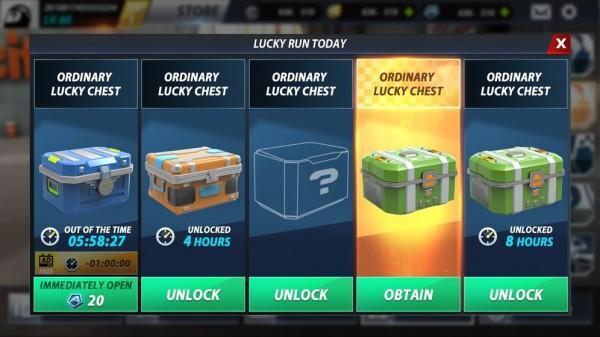 (D).幸运箱:解锁史诗般的箱子,获取图纸和金币来升级车辆零件,以使您的车辆行驶得更快,超过极限!