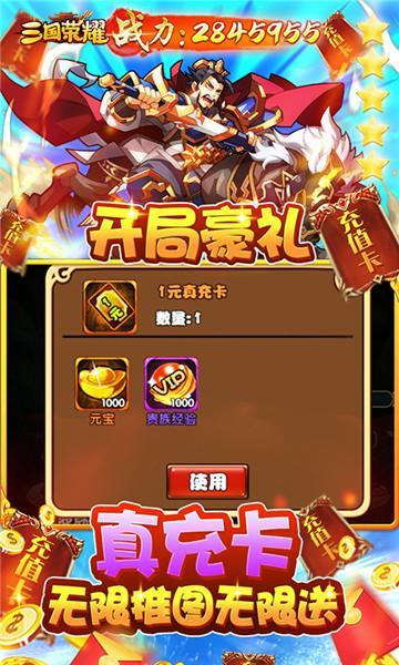 2.上线超值福利!登陆就送28888元宝、1000W银两、648充值卡,福利在送至尊三国著名武将鼎力相助,征战三国乱世。
