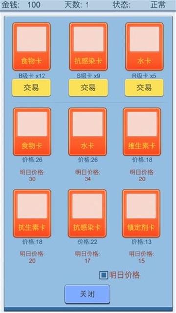 (E).出色的模拟游戏,玩家需要利用好天赋,活下去,抓好时机把你的卡卖出更高的价。