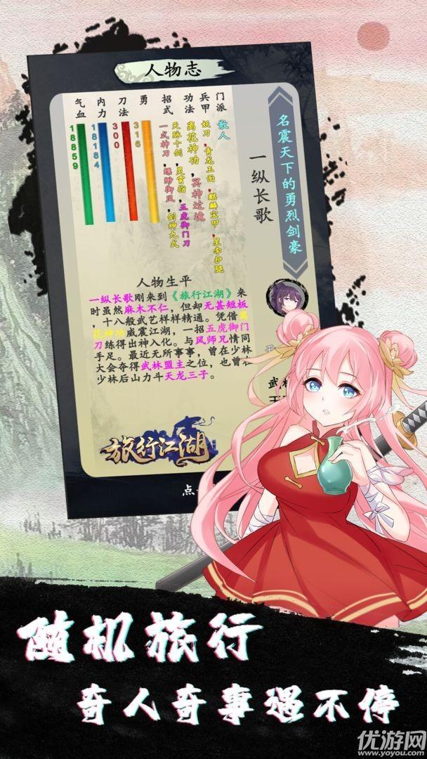 旅行江湖app是一款以江湖为主题的游戏软件,,玩家在进入之后系统会将玩家设定为一名江湖人士,而玩家将会操作这款游戏中的一名将江湖人士进行征战江湖,在这款软件游戏之中,拥有着很多的淳朴古风风格,在里面会让我们感受到一种独特的江湖气息,让我们对这款游戏充满着非常多的向往之情,除此之外,,还有很多的古风类型风格的文字,这些文字也是非常具有特殊性的,在这些文字始终我们需要通过对这些文字分析来进行游戏下一步的行动 是一款非常好用的软件,是值得我们拥有的。