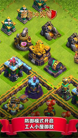 c.使用加农炮、迫击炮、箭塔、隐形炸弹、陷阱、城墙等多种防御设施保卫家乡村庄。