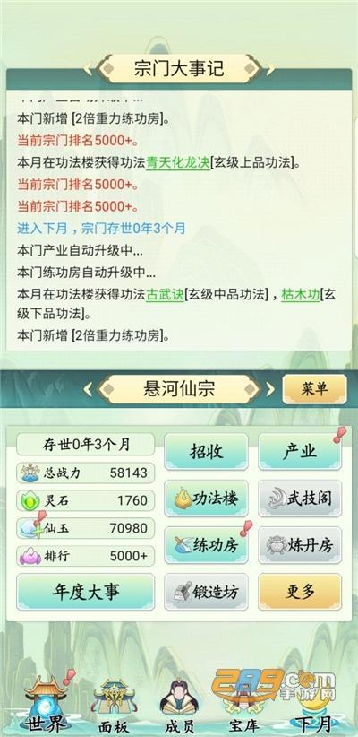 e.开局弟子只要红色,前期不要收过多弟子,五个弟子就可以要注意收支平衡。玩家需求运用不同的方式,来将本人的宗门开展壮大,并努力提升弟子们的修为