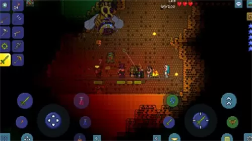 泰拉瑞亚是一款沙盒像素冒险游戏,游戏地图非常大,玩家可以自由的在游戏中探索,游戏地图物资丰富,玩家可以收集材料来制作武器和道具,帮助自己消灭关卡里出现的敌人,非常有趣,喜欢像素沙盒游戏的玩家不要错过了。