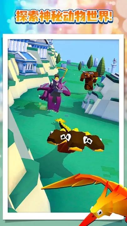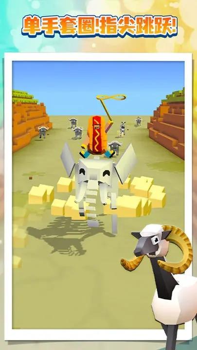 2、在遇到新动物后,先骑着当前的动物跑到新动物身后,接着松开手指,然后落在新动物的背上,再按住屏幕不要松开,然后拖动手指移动来躲避前方的障碍物,当屏幕中的【红心】进度条变满之后,就可以成功获取这个新动物了。