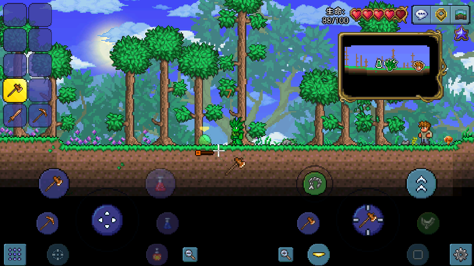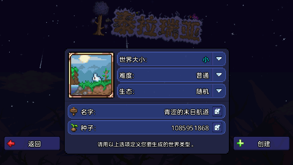 E.在完成角色自定义后,游戏就把玩家扔进了一个完全随机生成的像素世界中,手头的工具意味着玩家需要造东西、探索世界并打败怪物。