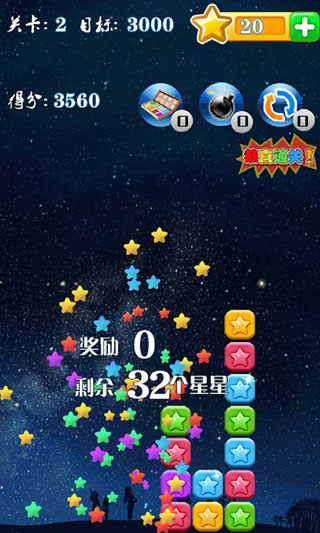 E.消除星星肯定是相同颜色相连一片消除为基础,这样翻倍的分数就会很高;