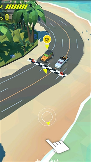 - 安装手游后,选择方向盘或左右键控制赛车方向。