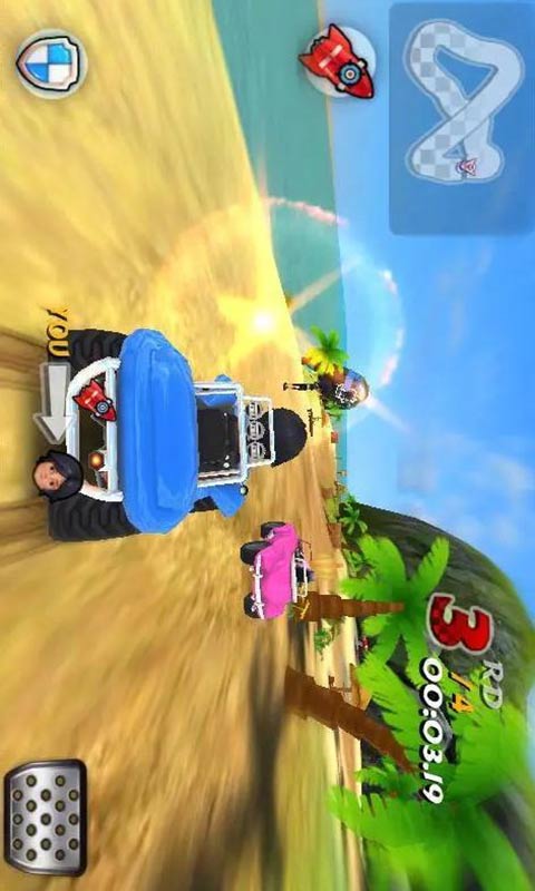 2、采用生动的卡通风格图形,鲜艳的颜色和可爱的角色设计让游戏充满趣味,细致的赛道和环境让每一场比赛都充满视觉享受。