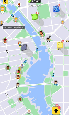 简约的手游画面风格,可以够清楚的查看到地图上的路线,方便玩家派遣相应的车辆前往完成订单。