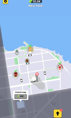 能不要断解锁全新的城市区域,在新的城市中安排出租车,扩大自己的出租车业务,赚取更多金钱。