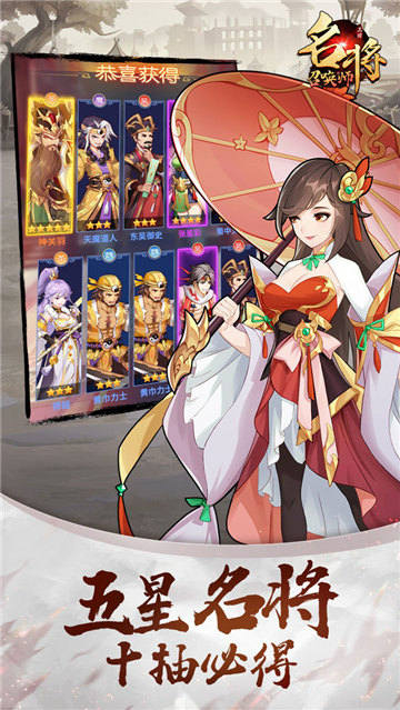 (B).与汉末三国历史名将谋士面对面,超高爆率,首次十连抽保底5星名将通关即可解锁强力神器,共有5个超强神器,威力巨大,加速通关效率