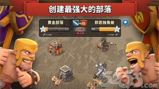 部落战争是一个史诗般的战斗策略游戏。你需要建立村庄,与成千上万的网友训练你的军队和战斗!看看谁才是王者!游戏中你需要不断的提高军队的作战实力,并且可以完成一定的任务后创建家族,你也可以对各种武器进行升级,来开启你的王者之路吧。