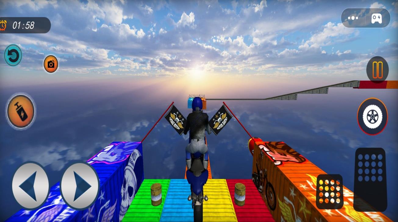 a.赛道中设有飞跃点,玩家可操控摩托进行飞跃特技,获得额外加分。