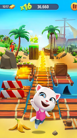 c.跑酷追强盗:卑鄙的浣熊贼偷走了金子。玩家可以夺回金条,为会说话的汤姆猫家族建造并升级神奇的家园。完成的家园将解锁可供玩家探索和跑酷的新场景。赶快开心跑酷吧。