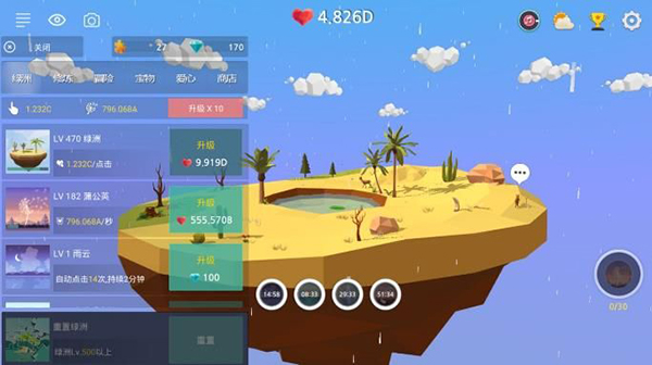 4.当绿洲级别升级时,地形会发生变化,树木与动物等新元素会浮现。