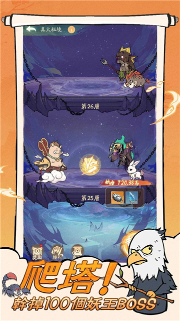小妖问道给全世界的玩家带去欢乐,小妖问道是一款非常有趣的放置挂机类手游,不走取经路, 师徒去砍树!道友,你可在西天取经路上看到唐僧师徒?没见过?那就对了!因为他们都在这里哐哐砍树集神装呢!小妖问道是一款拥有精美画风的修仙游戏,玩家们将作为一只小妖怪开启自己的修仙旅程,你在冒险的时候可以获取到资源奖励增加自己的整体修为,拥有可以与妖王战斗的基本。