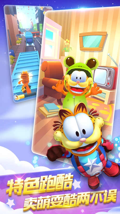 我的加菲猫是一款非常另类的跑酷手游,游戏玩法非常独特,不仅有正常的跑酷玩法,玩家还可以与加菲猫激情互动,可以喂它吃东西,还可以给他更换时装,更能够帮它布置专属的房间,这么好玩的游戏千万不要错过哦。