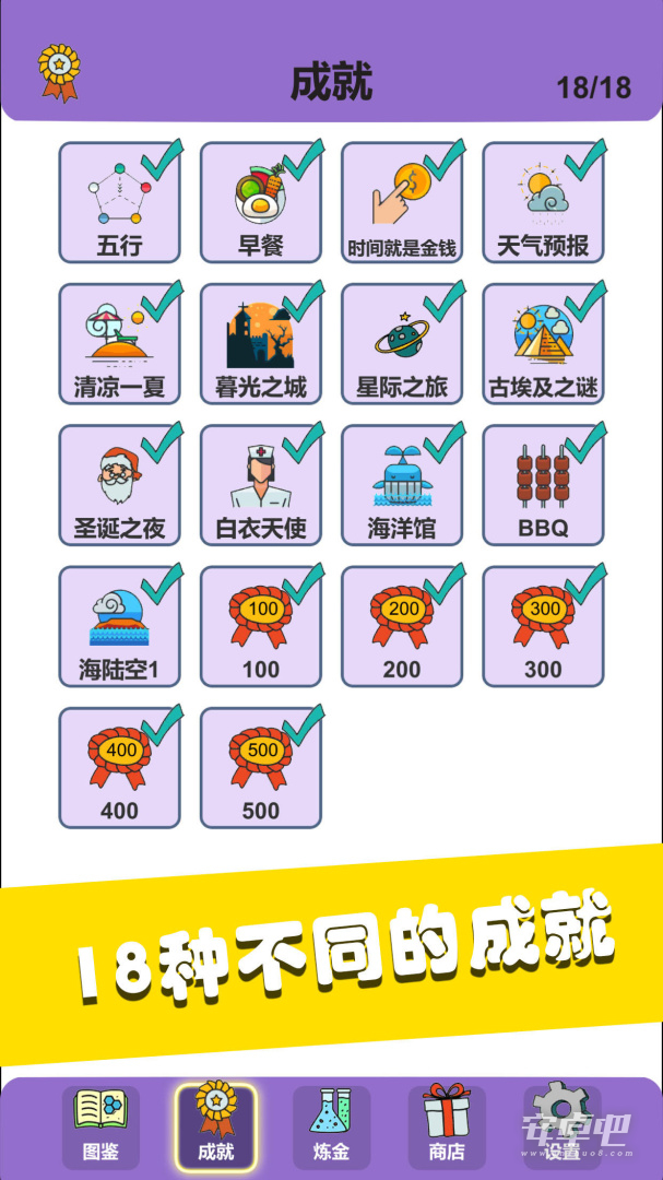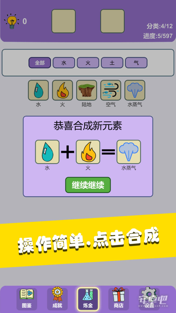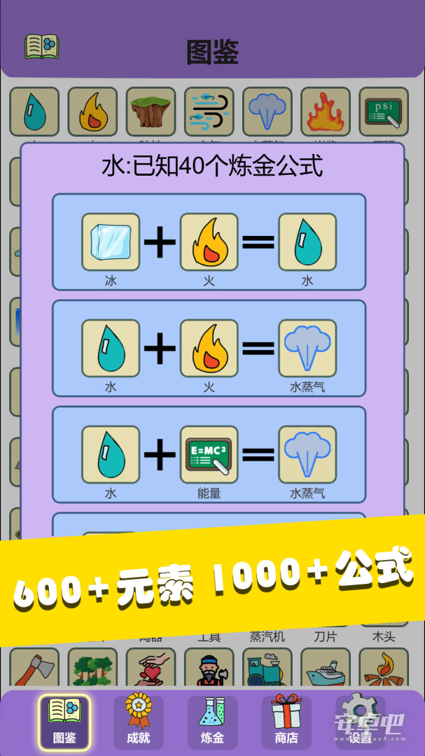 3、一款独特的益智手游,玩家通过将不要同的元素与物质合成为新的物质,来得到新的元素与物质