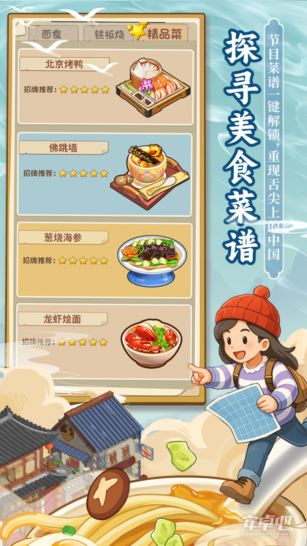 2、以美食为主角,手游中每一张精心绘制的美食原画令人垂涎三尺,璀璨欢快的画风拉近和玩家之间的距离,体验变身美食大亨与游历中国名山大川的成就感