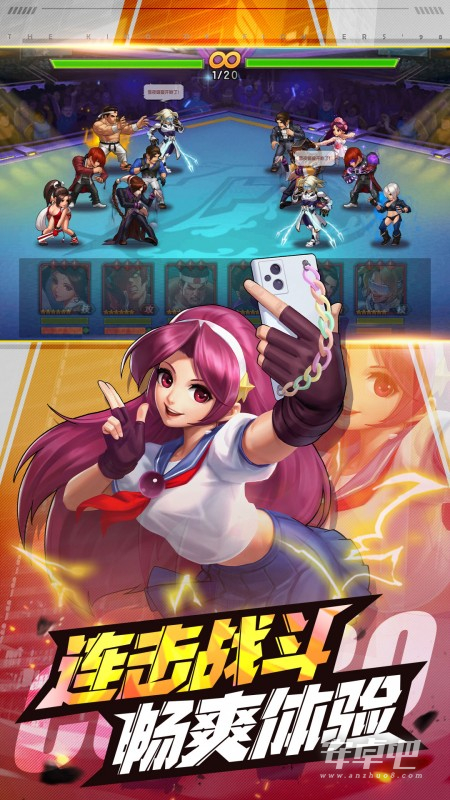 1、拳皇98终极之战OL是由腾讯代理发行的格斗类手机手游,相较于传统卡牌手游玩法以此为基础添加新的玩法,手机各类人气角色打造最强队伍挑战boss成就真实的拳皇时刻