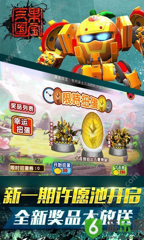 《果宝三国5.0最新版本》在专属于果宝的格斗世界中,官方特别为玩家增设了多个全新神兽选择,在提供丰厚的礼包福利同时,更有全新的多项内容开放哟,欢迎大家赶紧来体验!