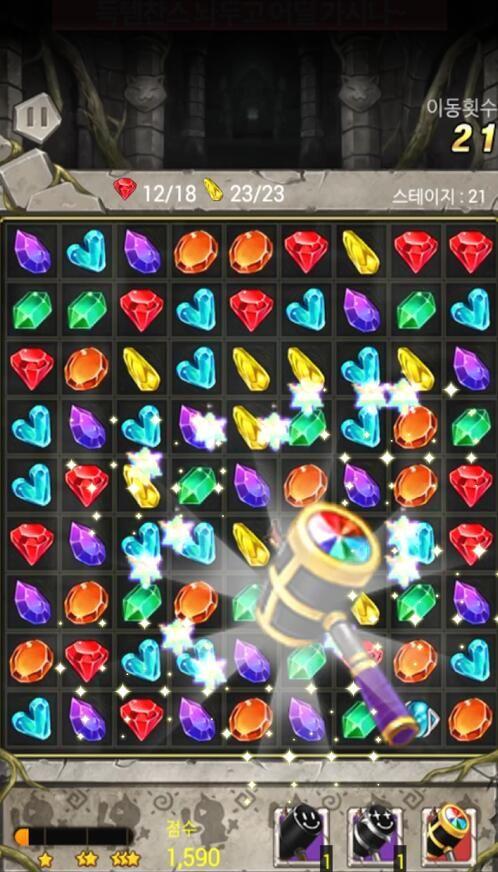 2、连击相同颜色的宝石即可完成消除;