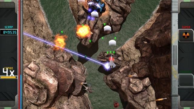《革命王牌》中你驾驶战机的护甲并不会在第一次被击中后立刻消失,所以你可以更加集中精力消灭敌人,而并不需要太注意躲避子弹。当然,你还可以升级你的护盾和武器。