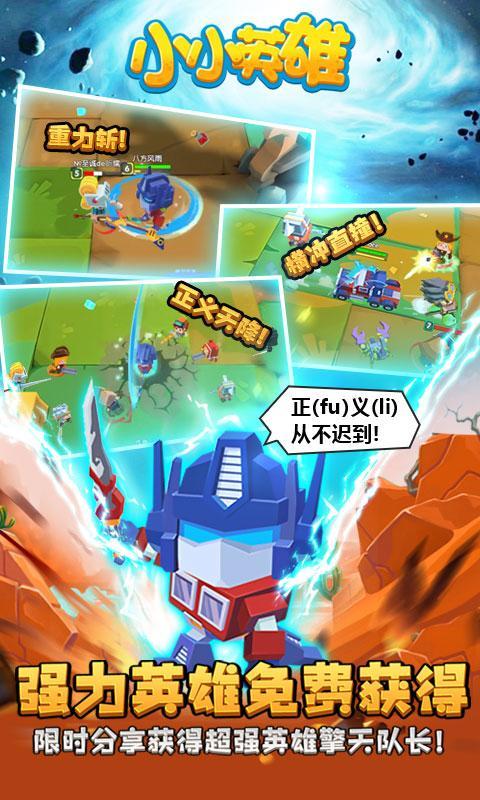 《小小英雄》萌萌来袭,2018年度不可错过的积木风吃鸡+Moba竞技手游。别具一格的上帝视角大逃杀,1平方公里刺激战场,百人空降白热厮杀!玩家可操纵几十位技能迥异的英雄,在熔岩围困的绝地中,拾装备、藏掩体、怼技能、拼策略!更有乱斗、推塔、夺宝等多种有趣的开黑玩法等你来挑战!