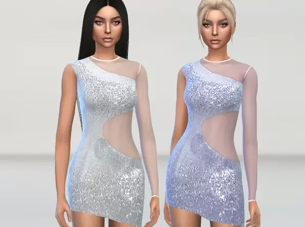 模拟人生4 女士单肩侧透连衣短裙MOD