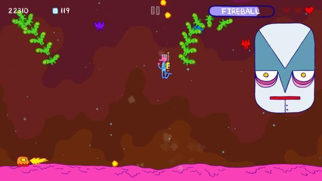 游戏中,玩家要操控一名长着三只眼睛的勇士左右移动,在躲避障碍物的同时,还要使用背后的枪来对付上下夹击的外星人,简言之,游戏核心玩法仍是竖版射击