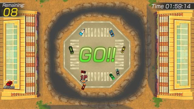 一个画面里表示全程路线,能享受与平时不同的操作感的【迷你GP竞赛】。在四角形战场用回转攻击使敌人落下的【车辆战斗】。
