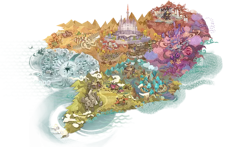 位于太阳王国的边境,充满了多处巨大又错综复杂的洞窟。 洞窟中,有着名为古鲁兽的温驯异兽,与熊族塬住民共同生活。