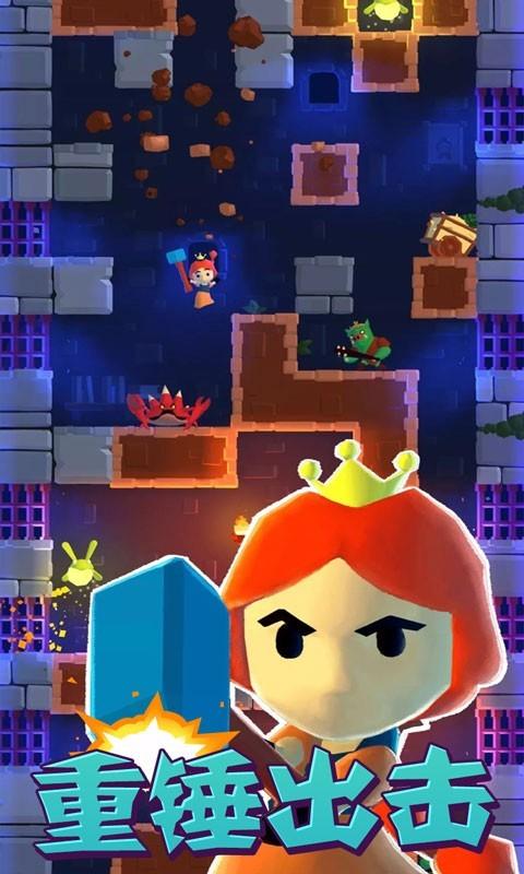 平时柔弱无力的公主在这款游戏摇身一变,拿起武器,不断的向下挖掘土块,打击怪物,破坏障碍物,寻找回到逃出塔的方法。