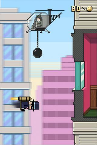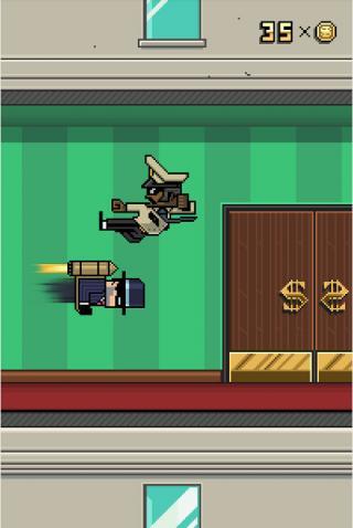 游戏玩法稍有类似flAPPy bird。游戏中,玩家控制装备着火箭的盗贼入室盗窃,还得不断躲避来自警察的追捕。点击左键飞行,点击右键冲刺,玩起来非常的有意思。喜欢这类带有虐心色彩的玩家千万不要错过哦。