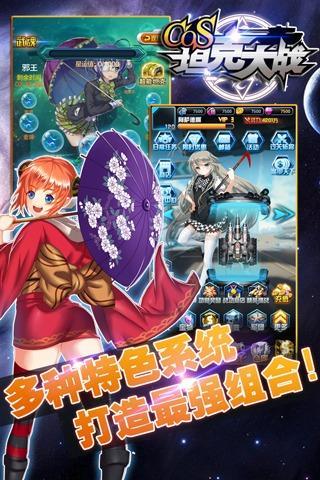 萌娘华丽变装,坦克激情备战,无限乐趣嗨翻天!最萌坦克娘,等您来召唤!2016最好玩的二次元动作射击卡牌游戏-《COS坦克大战》强势来袭,一起来暴走吧!坦克和萌娘的完美结合,拒绝枯燥,拒绝乏味,拒绝假大空,用实力打造真真正正的国民良心游戏!千种坦克任君挑选,随意搭配,多种特色系统,打造最强组合,一旦技能大暴走,您将无人可档!更有趣的是还可以COS变装哦,而且变完以后您将会更加的强力,更加的无人能敌!
