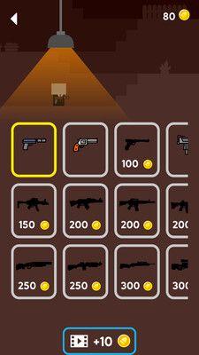 很简单,上楼梯,向坏人开枪,完成任务,你只需要瞄准好,其他都会自动进行,完成任务之后获得金币,去武器库挑选你心仪的武器,推荐散弹枪,范围广,容错率高,因为你只有一次机会,如果你没射中敌人你就会被反杀!注意哦,每一关的BOSS可以抗住两次射击!