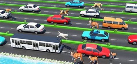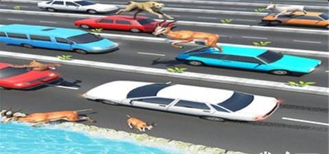 3.玩家操控着这些动物穿过公路,车来车往非常危险,一定要小心控制,不能被撞到。