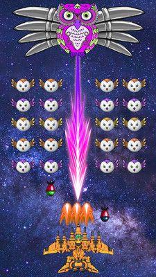 游戏画面让人震撼,浩瀚的银河系,美丽的太空,邪恶的猫头鹰控制了银河系,玩家需要帮助银河鸟消灭猫头鹰,保卫银河系,猫头鹰攻击伤害非常高,玩家一定要小心躲避,寻找机会反击,击杀关卡BOSS可以获得武器加成,拾取随机道具,让你更强。