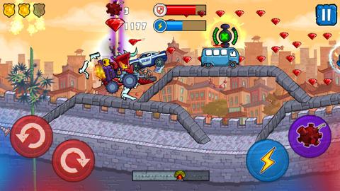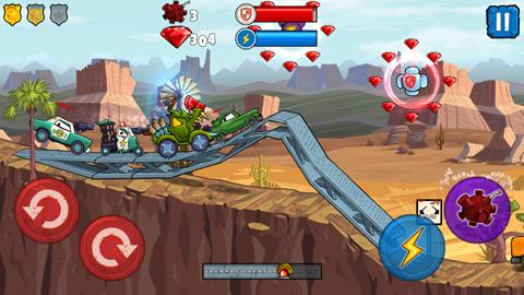 车吃车3(CarEatsCar3)是一款风格十分狂野的横版赛车竞速类游戏,游戏中玩家将驾驶邪恶的汽车,通过上坡和下坡来穿越各种赛道并辗压沿途的一切障碍,同时还要收集相关增益道具来增强自己赛车的能力或者是用一些道具来与警察和民间对手作战。为了增强玩家的游戏体验,这款游戏进一步提供了更强大的动力,95个丰富的关卡设计,让你的游戏体验更加持久,极佳的视觉享受,高清精致的游戏画面,各种各样的疯狂赛车类型,都可被解锁开启,借助着游戏过程中收集到的硬币和钻石能提高汽车的特性以及技能,更重要的是,它可以在离线模式下工作,因此您可以随时享受它。此外,在车吃车3中除了基础赛车的速度和装甲能被升级,其中还有多样化的丰富道具可被装备在赛车上,从而能够更加方便的收集游戏增益道具。不仅如此,各种各样的破坏性战斗武器——炸弹,能帮助更加方便处理追击你的敌人,最终实现你的个人目标,成为征服道路的第一人,若有喜欢这款游戏的朋友就快来下载体验吧。