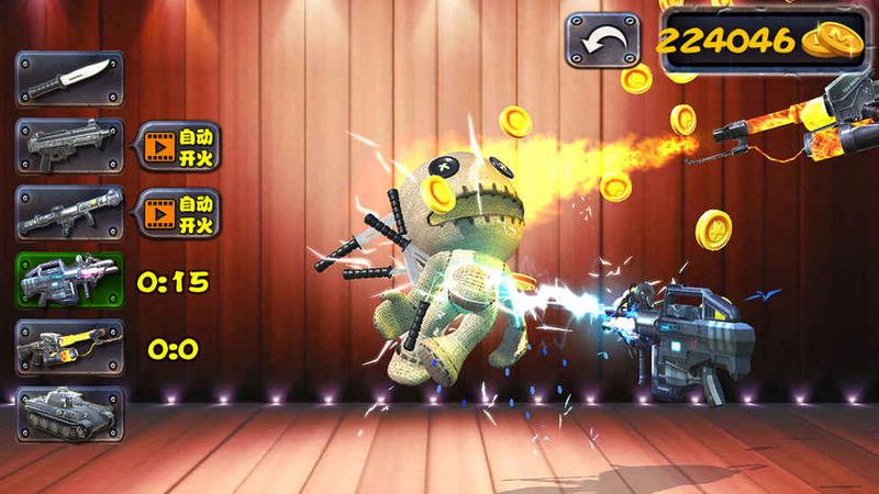 这个木偶人就是DG的代表,用各种武器打击木偶人就可以赚取金币。金币的用途可以解锁各种武器。各种乐趣在里面,等着你来发掘!